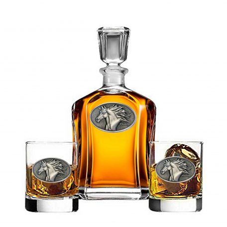 JK Bronze & Beyond Exclusive Majestic 24 oz. Capitol Decanter plus TWO – 14 oz. Double Old Fashion Glasses with an elegant pewter design.